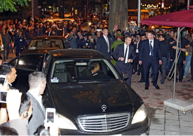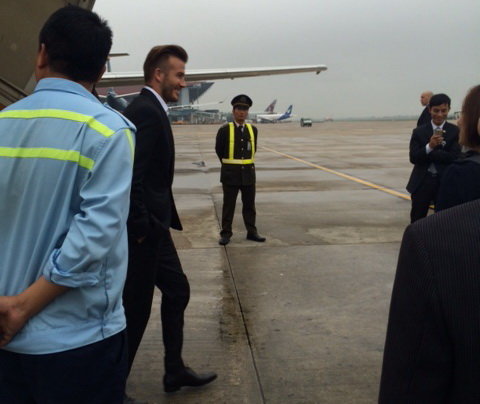| Beckham tại sân bay Nội Bài, chuẩn bị về khách sạn. Ảnh: Nguyễn Khánh |