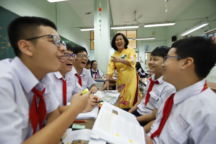 Một tiết học văn của học sinh lớp 9 Trường THPT chuyên Trần Đại Nghĩa, TP.HCM với cô Trà Mi. Đề thi tuyển sinh lớp 10 năm nay Sở Giáo dục sẽ cân nhắc về độ khó - Ảnh: NHƯ HÙNG