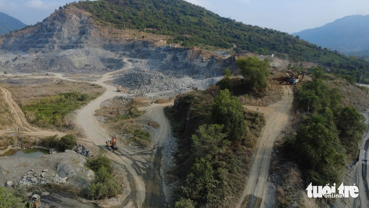 Toàn cảnh núi Dài Lớn mà doanh nghiệp kiến nghị đang được Liên doanh Antraco khai thác đá phục vụ hàng loạt dự án cao tốc tại miền Tây hiện nay - Ảnh: MINH KHANG