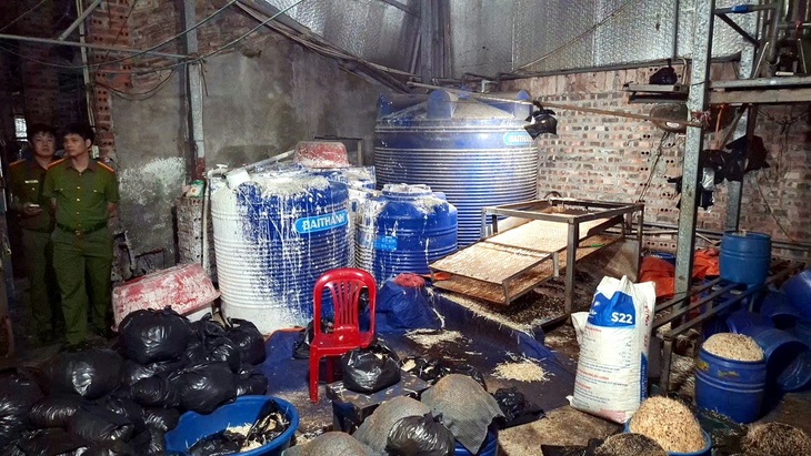 Công an tỉnh Lào Cai kiểm tra cơ sở sản xuất giá đỗ bằng hóa chất độc hại ở xã Vĩnh Hưng (Phú Thọ) - Ảnh: THANH TUẤN