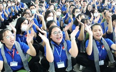 | Các em học sinh hào hứng với trò chơi cắm cờ tên đảo VN - Ảnh: Đức Triết |