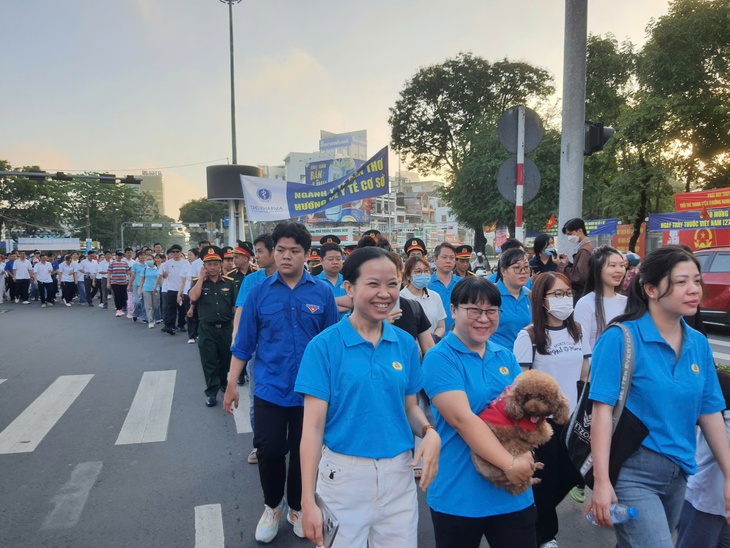 Đông đảo nhân viên ngành y tế, các ban ngành đoàn thể tham gia đi bộ hướng về y tế cơ sở - Ảnh: T. LŨY