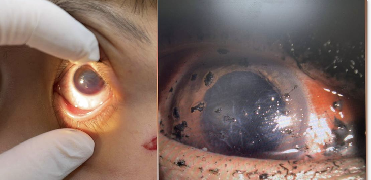 Mắt bị tổn thương do pháo nổ - Ảnh: BVCC