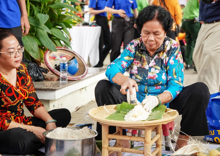 Hào hứng hội thi gói bánh chưng, bánh tét tại ngày hội - Ảnh: KỲ PHONG