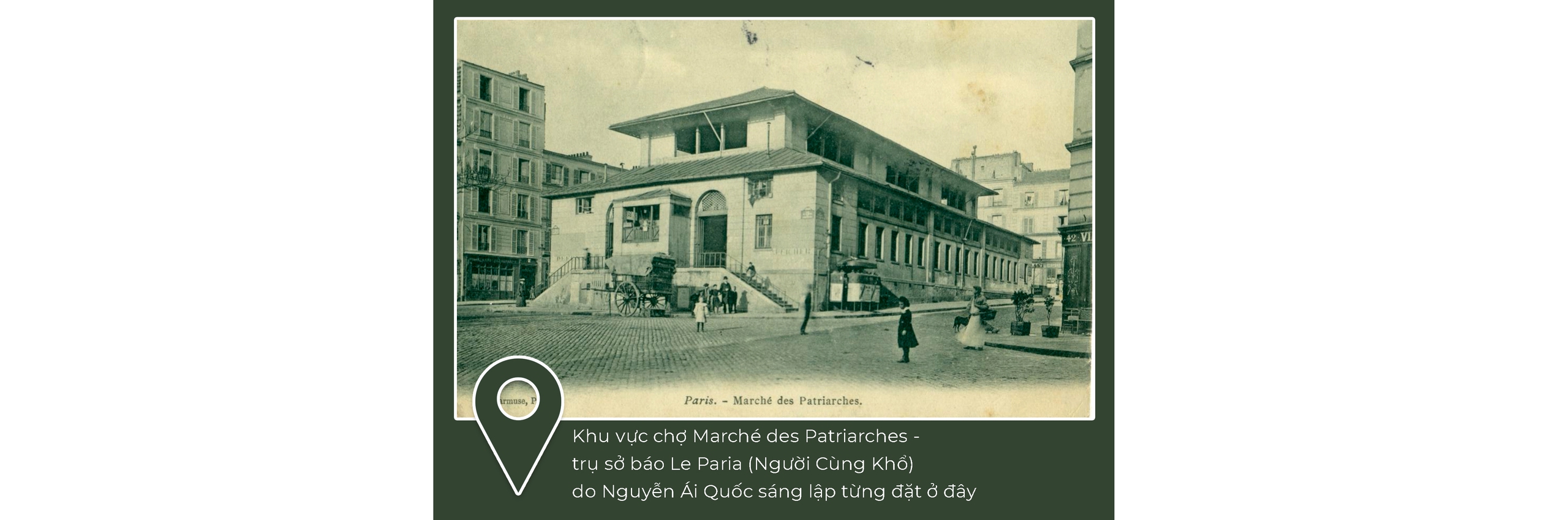 Khu vực chợ "Marché des Patriarches". Tháng 11-1922, trụ sở của báo Le Paria được chuyển về số 3 Rue du Marché des Patriarches - Paris, quận V, đây cũng là nơi đặt trụ sở của Hội Liên hiệp thuộc địa, nơi lưu trú của Nguyễn Ái Quốc và là địa điểm hoạt động của nhiều nhà cách mạng đến từ các thuộc địa của Pháp.
