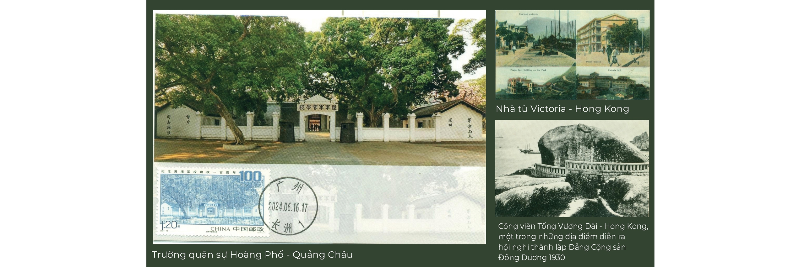 Trường Quân sự Hoàng Phố ở Quảng Châu là nơi Nguyễn Ái Quốc đã lựa chọn và giới thiệu một số học viên Việt Nam vào học để được đào tạo quân sự. Công viên Tống Vương Đài tại Hong Kong gợi lại địa điểm diễn ra Hội nghị thành lập Đảng Cộng sản Đông Dương năm 1930. Nhà tù Victoria ở Hong Kong gợi nhớ thời gian Nguyễn Ái Quốc - với bí danh Tống Văn Sơ - bị giam giữ từ 1931-1933.