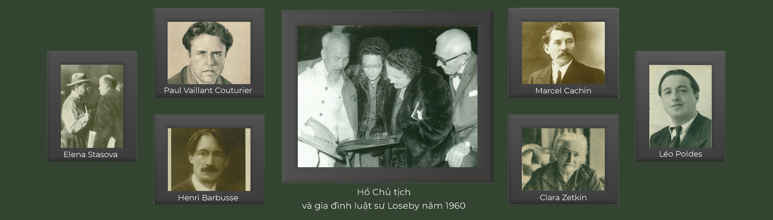 Những tấm bưu ảnh về chân dung của Paul Vaillant-Couturier, bà Stasova, luật sư Loseby… những người Cộng sản quốc tế đã hiệp lực giải cứu Tống Văn Sơ - Nguyễn Ái Quốc ra khỏi nhà tù thực dân Anh ở Hong Kong vào năm 1932.