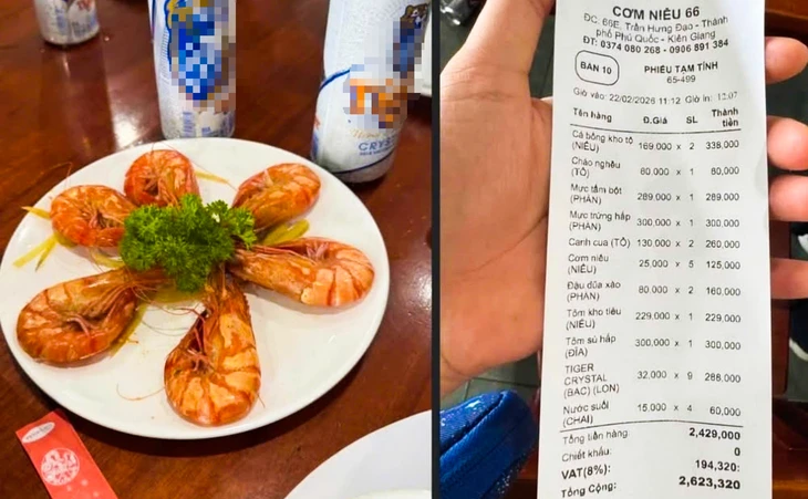 Qua xác minh, đại diện chủ quán Cơm Niêu 66 (đặc khu Phú Quốc) nói quán có niêm yết giá rõ ràng. Tôm sú loại to ngoài thị trường có giá cao dịp Tết nên việc quán bán dĩa tôm sú 6 con với giá 300.000 đồng là phù hợp.