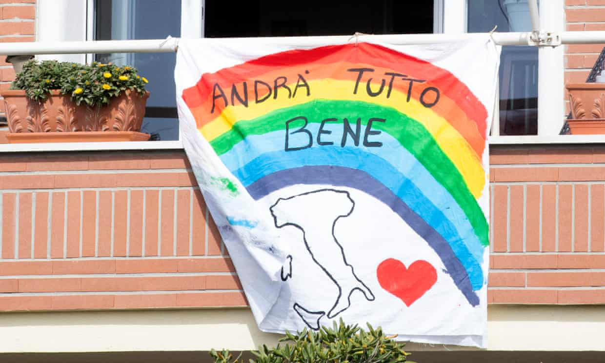 Động viên nhau, trẻ em và người lớn ở Ý vẽ, treo tranh cầu vồng với thông điệp: Mọi thứ rồi sẽ ổn - Ảnh: The Guardian