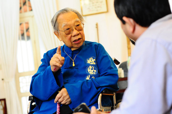 Trần Văn Khê trả lời phỏng vấn PGS.TS Nguyễn Hoài Nam cho bài viết Nghe nhạc để yêu đời hơn của báo Tuổi Trẻ - Ảnh: Quang Định |