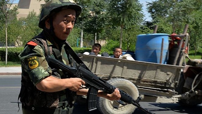An ninh Trung Quốc tuần tra ở Tân Cương - Ảnh: Straits Times |