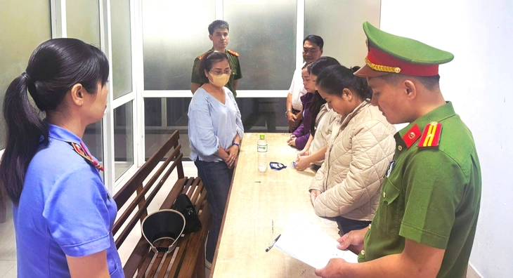 Những người liên quan tại cơ quan điều tra - Ảnh: CA