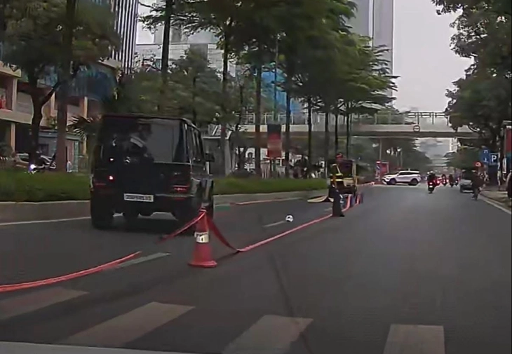 Cảnh sát bảo vệ hiện trường vụ việc liên quan đến chiếc Mercedes G63 - Ảnh: D.H.