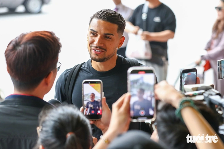 Hoàng Hên tươi tắn trả lời phỏng vấn truyền thông khi hội quân tuyển Việt Nam - Ảnh: MINH ĐỖ