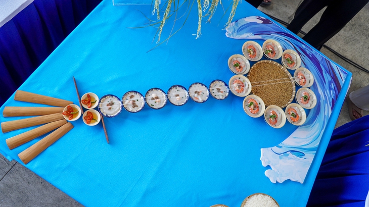 Điểm nhấn của hội thi là món bánh canh tôm được tạo hình thành cây đàn kìm của đội phường Hiệp Thành.