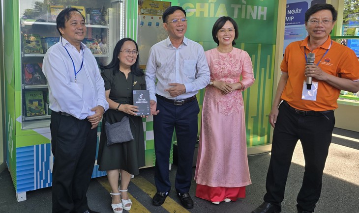 Phó giám đốc Sở Thông tin và Truyền thông TP.HCM Nguyễn Ngọc Hồi (giữa) cho biết ATM lì xì sách sẽ được duy trì trong những năm tiếp theo - Ảnh: HOÀNG LÊ