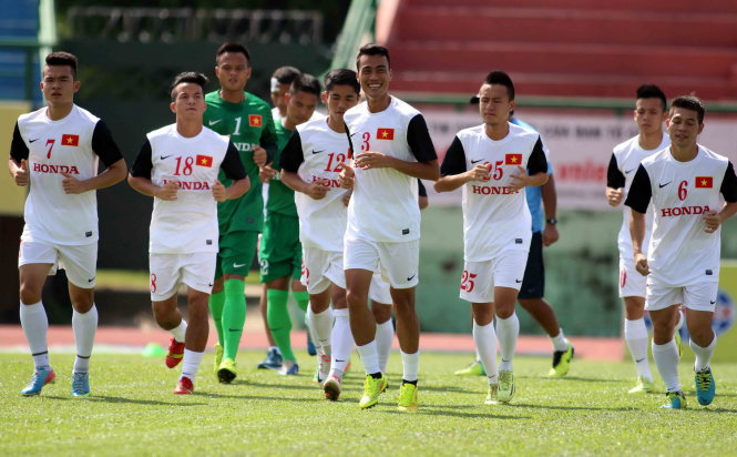 Tiền đạo Anh Đức và tiền vệ Văn Quyến bị chấn thương nhẹ ở V-League Eximbank 2014 nên không tham gia buổi tập đầu tiên này. Sau đó, đến lượt hậu vệ mới lần đầu tiên lên tuyển là Võ Huy Toàn (SHB Đà Nẵng) cũng nghỉ nửa chừng do bị lật cổ chân trong buổi tập. Dù mệt, nhưng các cầu thủ đều rất hưng phấn và nỗ lực “nuốt” hết các bài tập.