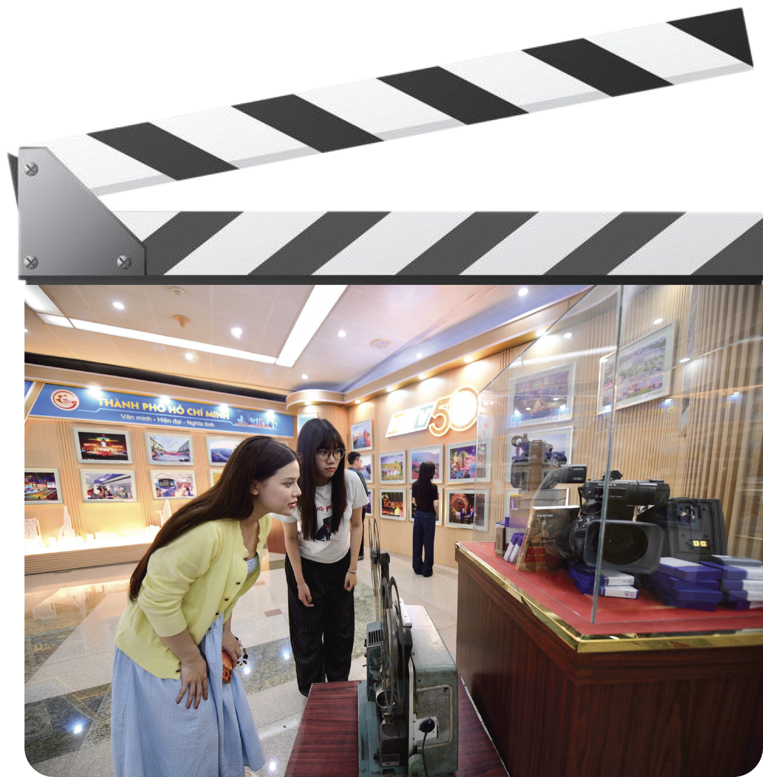 Các sinh viên thực tập trong Đài Phát thanh - Truyền hình TP.HCM tìm hiểu quá trình phát triển của đài - Ảnh: Quang Định