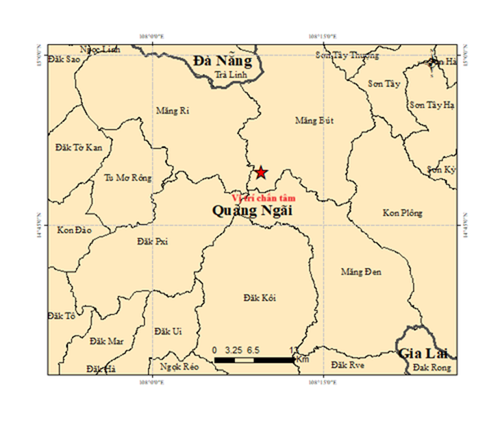 Trước đó, lúc 4h57 sáng nay, tại khu vực xã Măng Bút cũng ghi nhận một trận động đất mạnh 2,9 độ.