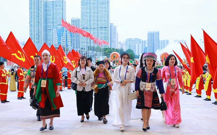 Các đại biểu đến dự Đại hội Thi đua yêu nước toàn quốc lần thứ XI tại thủ đô Hà Nội - Ảnh: TTXVN