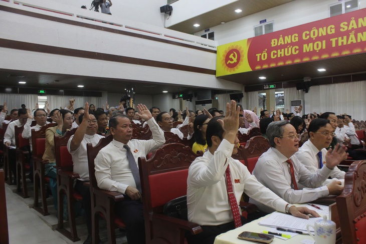 Các đại biểu Hội đồng nhân dân tỉnh Đồng Nai biểu quyết thông qua các nghị quyết - Ảnh: H.T.