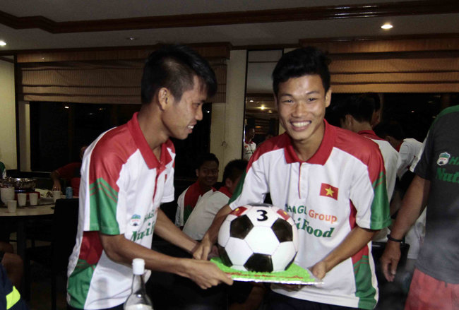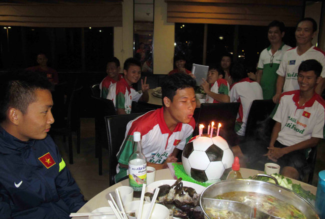 Chứng kiến ổ bánh sinh nhật ý nghĩa và tình cảm của mọi người, Đông Triều lặng người vì xúc động. Trung vệ đội U-19 VN nói lời cảm ơn đến các thầy, đồng đội và mọi người xung quanh. Anh nghẹn lời: “Em xin cảm ơn các thầy và đồng đội đã tổ chức cho em một sinh nhật đầy ý nghĩa như thế này”.