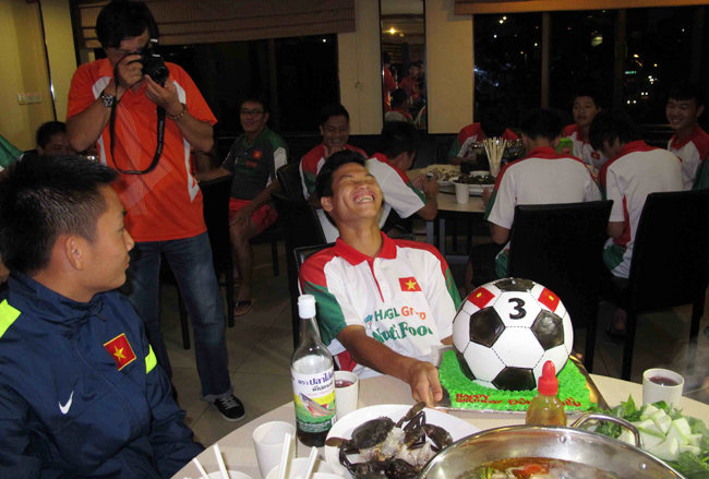 Về đến khách sạn sau trận bán kết với U-19 Thái Lan, khi các cầu thủ U-19 VN đang quây quần bên bàn ăn để chuẩn bị ăn tối thì đèn của phòng ăn chợt tắt. Và từ nhà bếp, các đầu bếp được công ty Nutifood cử đi theo đội tuyển U-19 VN đã cầm ổ bánh sinh nhật hình quả bóng có số ba (số áo của Đông Triều) với dòng chữ Happy Birthday Đông Triều đặt lên bàn.