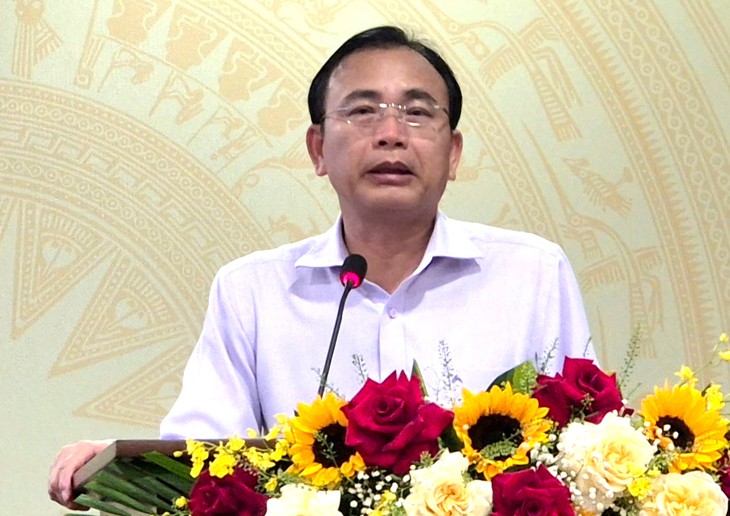 Ông Nguyễn Văn Nhựt - Giám đốc Sở Công Thương Khánh Hòa - thông tin về tiến độ triển khai 2 dự án Nhà máy điện hạt nhân Ninh Thuận - Ảnh: DUY THANH