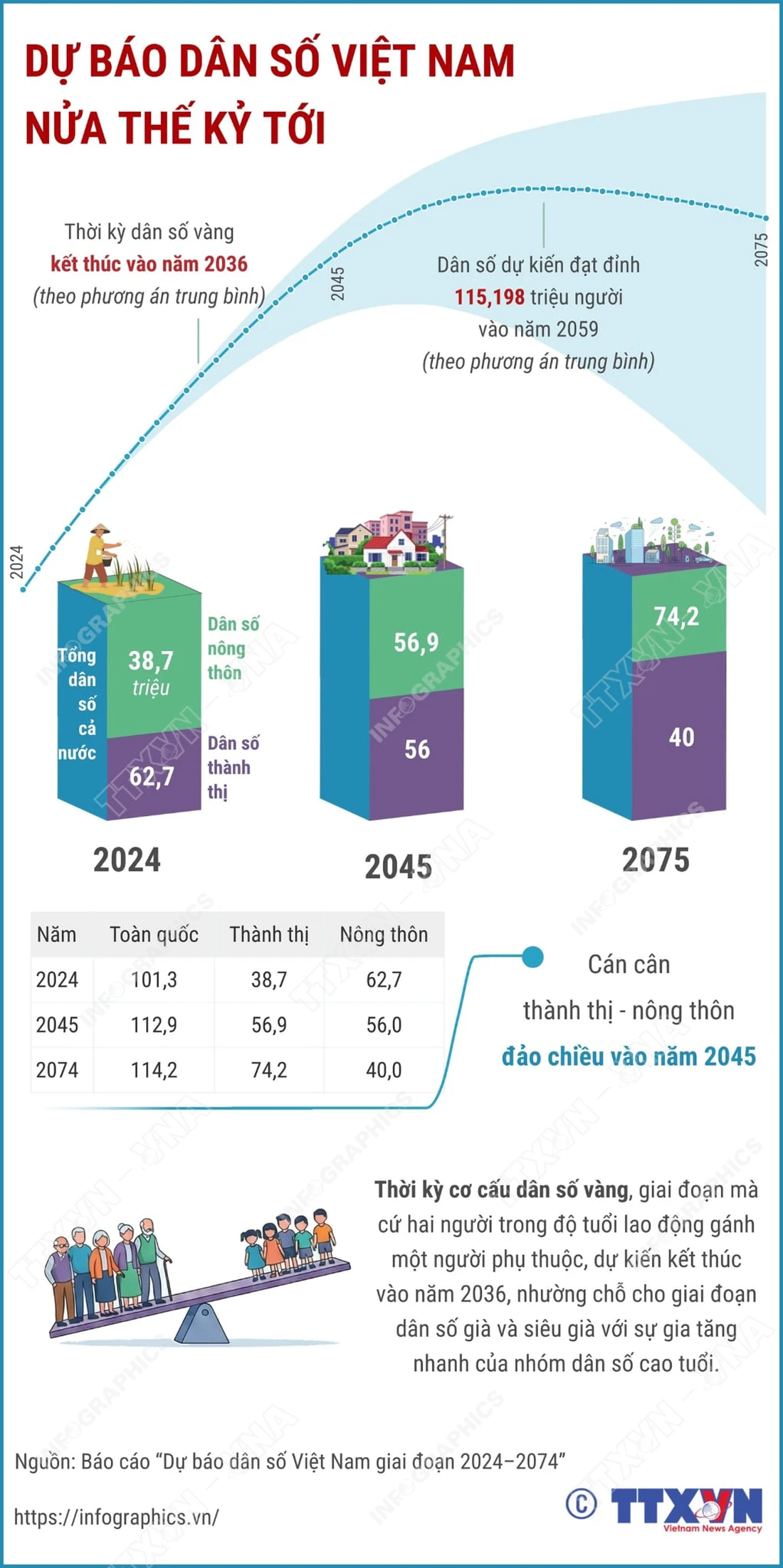 Báo cáo "Dự báo dân số Việt Nam giai đoạn 2024 - 2074" do Cục Thống kê (Bộ Tài chính) thực hiện đã cung cấp cái nhìn toàn diện về xu hướng biến đổi quy mô, cơ cấu và phân bố dân số Việt Nam trong nửa thế kỷ tới.