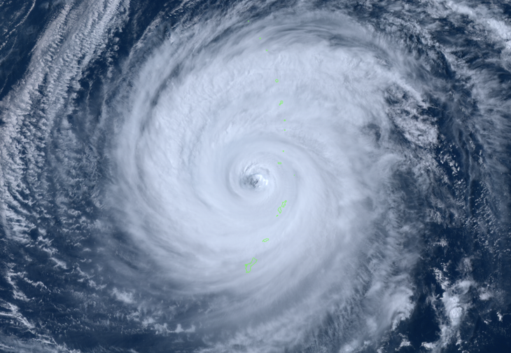 Qua ảnh vệ tinh Himawari 8 có thể thấy mắt bão thu hẹp và mờ hơn so với hôm qua nhưng hoàn lưu bão vẫn rộng hàng trăm km, đối xứng, dày đặc.