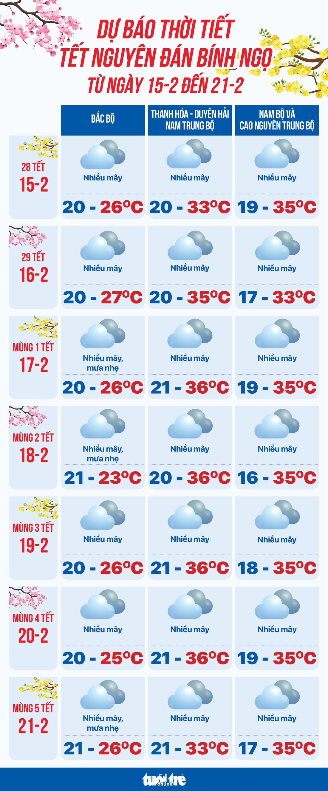 Dự báo thời tiết tuần nghỉ Tết - Đồ họa: NGỌC THÀNH