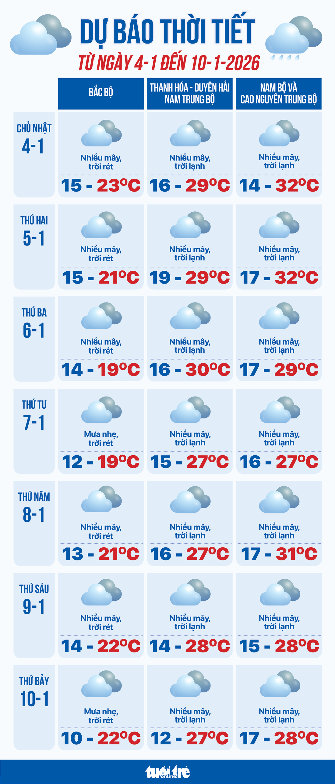 Dự báo thời tiết tuần từ ngày 4 đến 10-1 - Đồ họa: NGỌC THÀNH
