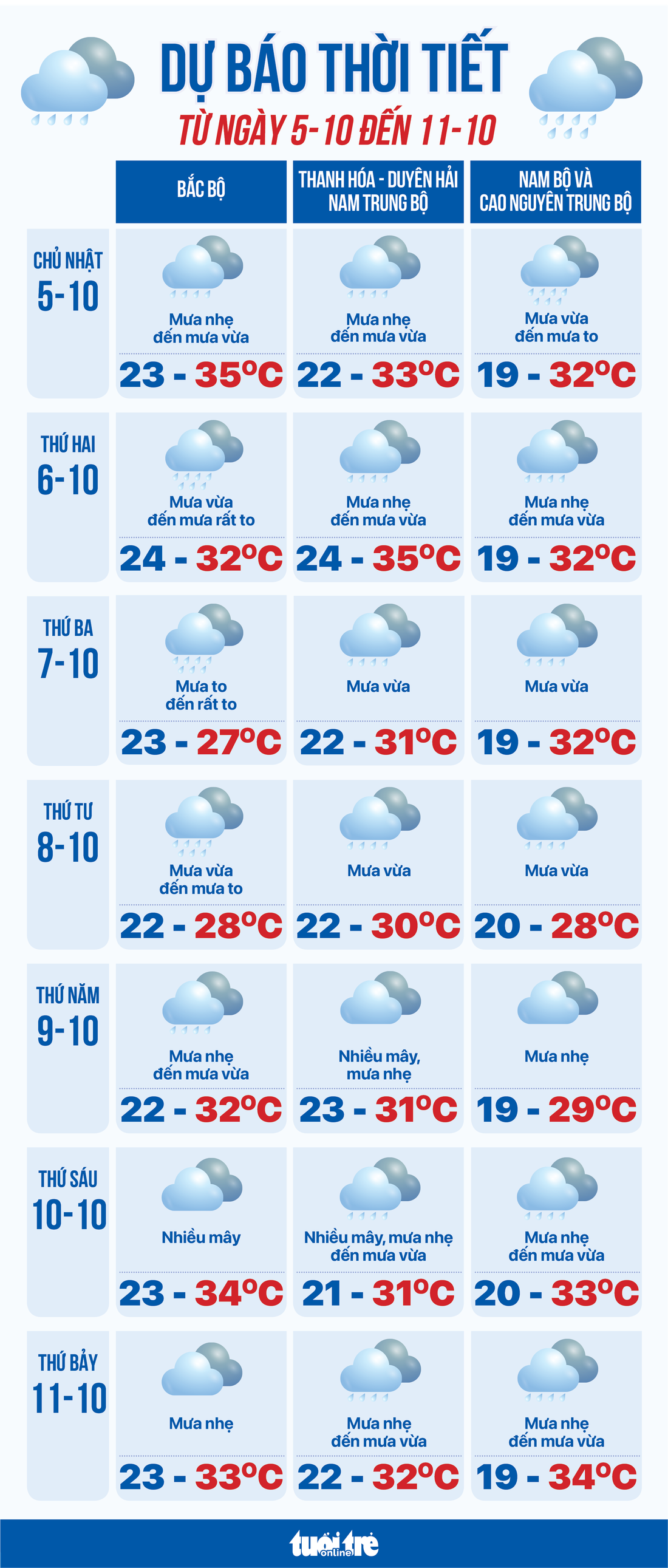 Dự báo thời tiết tuần từ 5-10 đến 11-10: