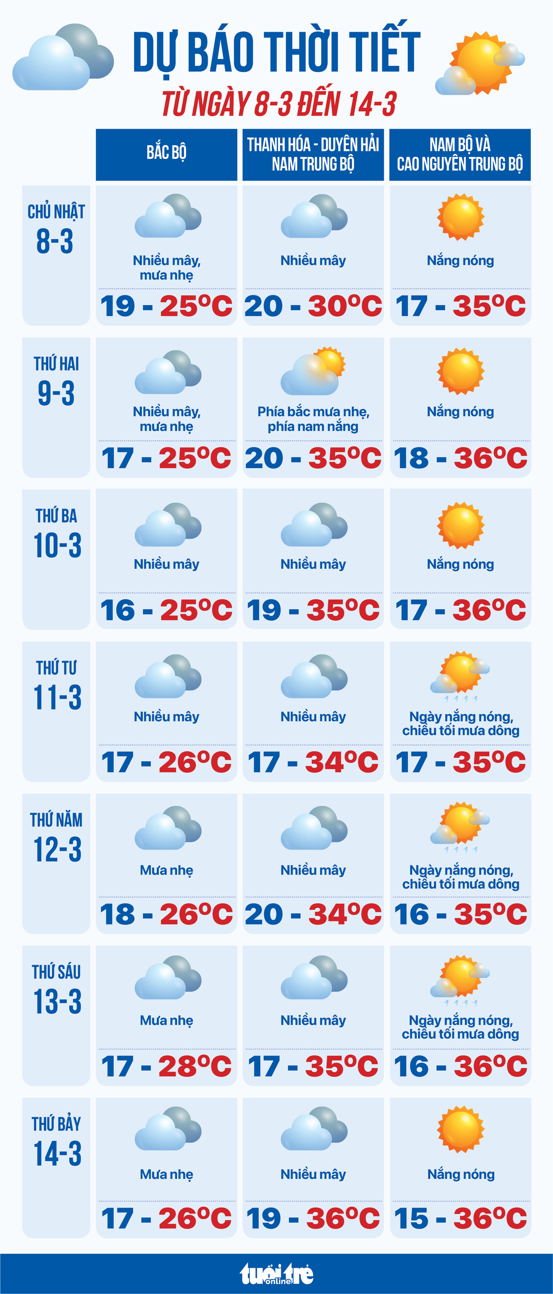 Dự báo thời tiết tuần này - Đồ họa: NGỌC THÀNH