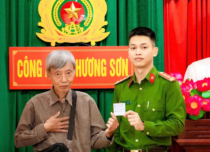 Tiếp nhận thông tin, cán bộ Công an xã Hương Sơn đã tận tình hỏi thăm, động viên và kịp thời hỗ trợ ông một khoản tiền nhỏ để trang trải bữa ăn trước mắt.