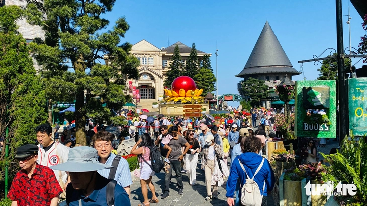 Du khách tham quan kín Bà Nà trong tháng 3-2026 - Ảnh: TRƯỜNG TRUNG