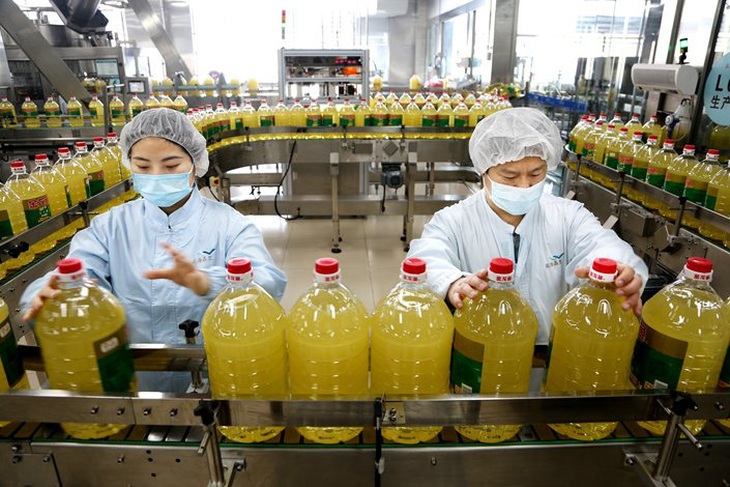 Công nhân sản xuất dầu ăn tại nhà máy Yihai ở tỉnh Giang Tô, miền Đông Trung Quốc - Ảnh: caixinglobal.com