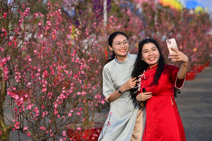 "Tôi đi ngày thường nên không quá đông. So với năm ngoái, khu vực này thay đổi rất nhanh, đường sá rộng rãi, cây xanh phủ mát. Ấn tượng nhất là khu trưng bày 300 cây mai và 300 cây đào rực rỡ", chị Hương nói.