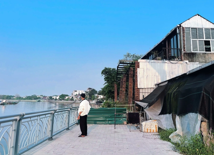 Đường đi bộ ven sông Như Ý (TP Huế) chưa thể thông tuyến do vướng mặt bằng của một hộ dân - Ảnh: BẢO PHÚ