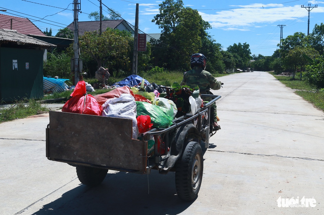 Sau khi tổng hợp số lượng lương thực, thực phẩm, chị trưởng ban Hội phụ nữ thôn kiểm tra lại lần nữa trước khi cho lên xe - Ảnh: HỮU HƯỚNG