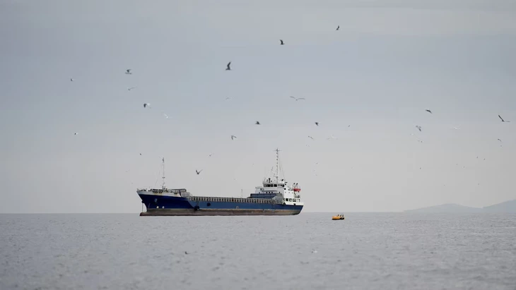 Một con tàu tại eo biển Hormuz, ngoài khơi Oman - Ảnh: REUTERS