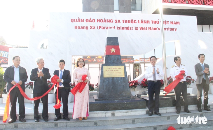 Đà Nẵng gắn biển tên UBND đặc khu Hoàng Sa với mô hình bia chủ quyền giống nguyên mẫu bia chủ quyền dựng trên quần đảo Hoàng Sa - Ảnh: TRƯỜNG TRUNG