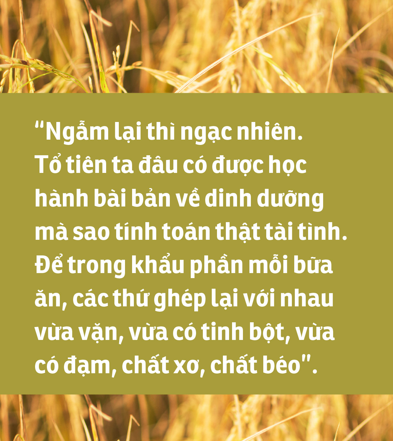Đằng sau đó là cả một tri thức dân gian khổng lồ mà ông bà tổ tiên đã để lại. "Đi tìm" hạt gạo quê hương, cũng như ẩm thực đi về cội nguồn.