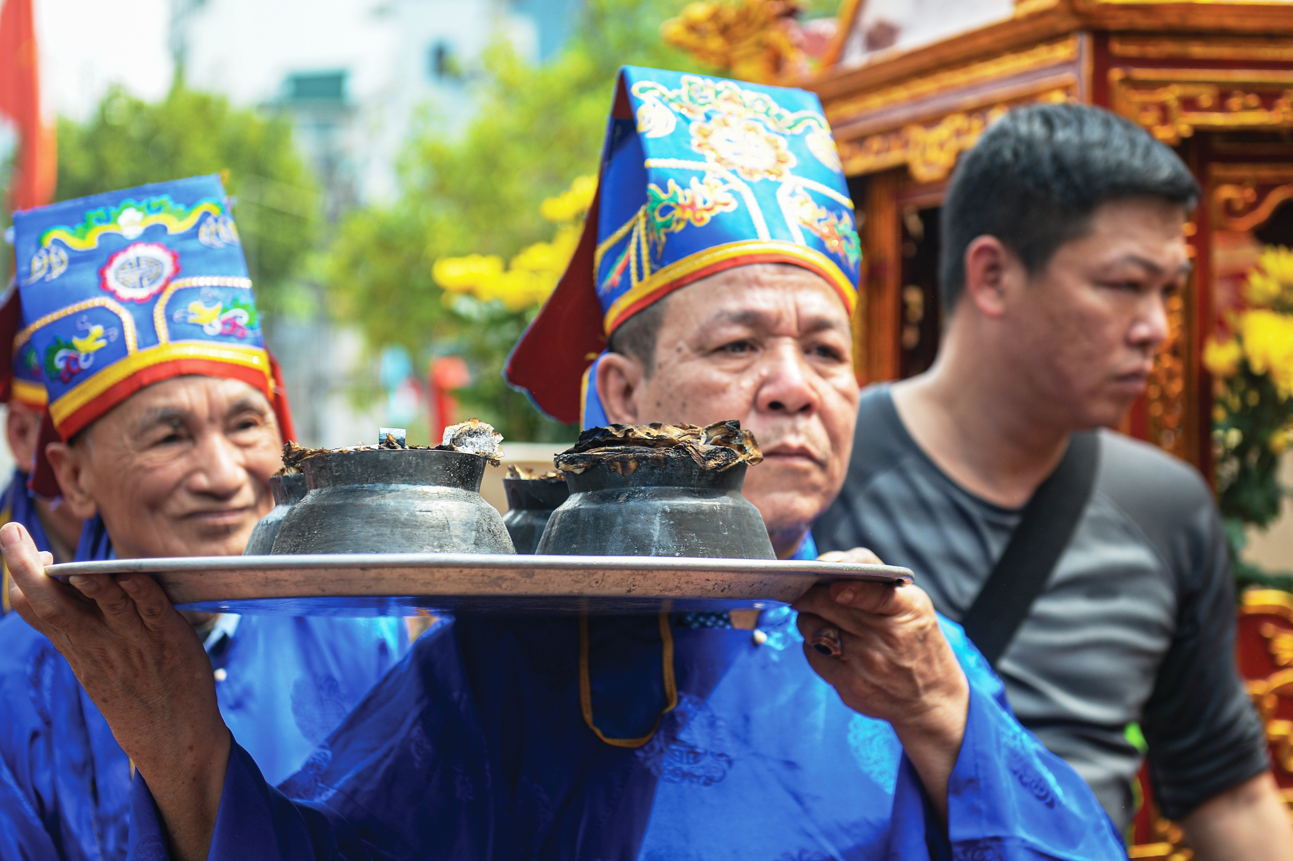 Hội thi nấu cơm ở làng Thị Cấm vào mùng 8 tháng giêng hằng năm tái hiện tinh thần “lấy lửa” tiếp lương cho quân lính thời xưa, cầu mong một năm mới ấm no, sung túc - Ảnh: PHÚC TÀI