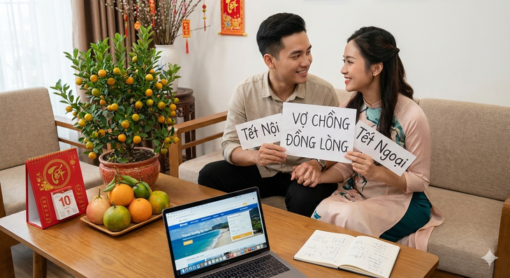 Tết ở đâu không quan trọng bằng việc vợ chồng đồng lòng, vui vẻ đôi bên - Ảnh do AI tạo