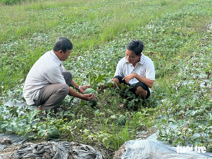 Ruộng dưa hấu nhiễm bọ trĩ, năng suất giảm khó đạt chuẩn để bán cho thương lái - Ảnh: HOA ÁNH