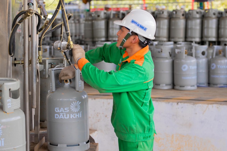 Nhân viên Gas South làm việc tại trạm nạp LPG Cần Thơ - Ảnh: DNCC