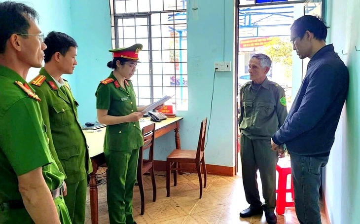 Cơ quan công an đọc lệnh bắt tạm giam đối với Huỳnh Hải Huy - Ảnh: V.N.