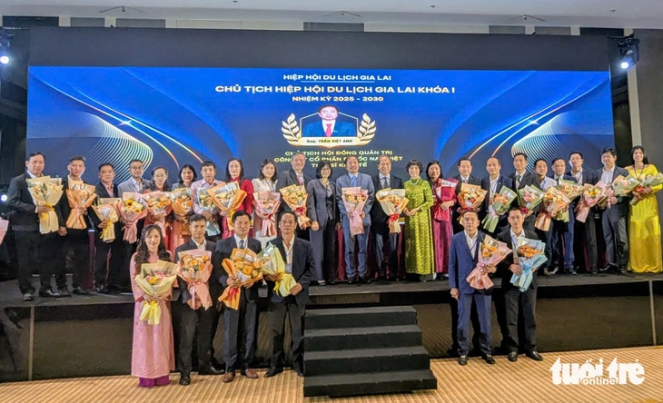 Ban Chấp hành Hiệp hội Du lịch tỉnh Gia Lai nhiệm kỳ 2025-2030 ra mắt tại đại hội - Ảnh: TẤN LỰC