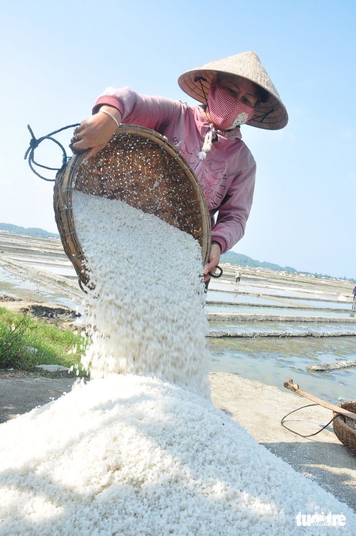 "Mấy năm trước giá thấp, làm muối cực mà lời không bao nhiêu. Năm nay giá cao gấp đôi ngay từ đầu vụ, bà con ai cũng phấn khởi", bà Loan, diêm dân ở Sa Huỳnh, chia sẻ.